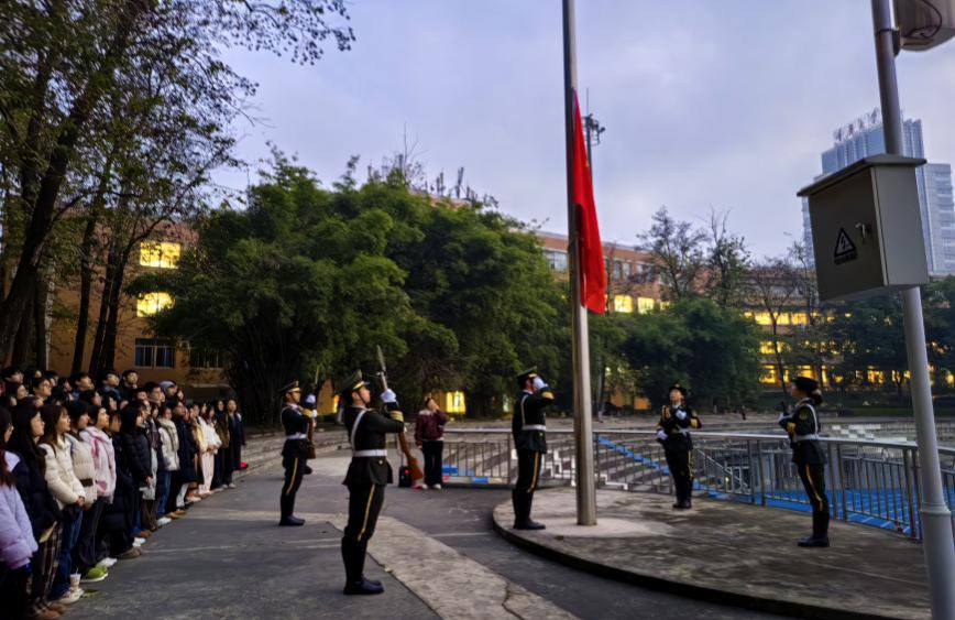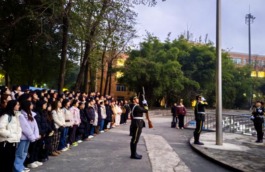 2026年1月5日,经济与工商管理学院本科生一支部举办“国旗映初心・青春担使命”升国旗主题党日活动。来自学院的党员、入党积极分子及其他同学代表共119人,怀着崇敬之心齐聚国旗之下,以庄严仪式开启新一周的学习与工作。