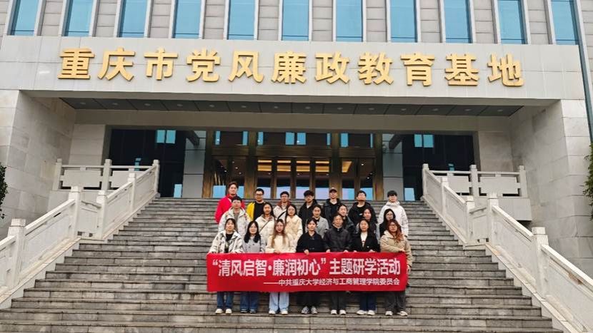 为深入学习贯彻中央八项规定及其实施细则精神,引导青年党员筑牢廉洁自律思想防线,2025年12月12日,重庆大学经济与工商管理学院党委联合学生青春倡廉学社,组织硕士、博士党支部师生党员代表赴重庆市党风廉政教育基地,开展了一场融主题党日、廉洁教育与法治教育于一体的“清风启智·廉润初心”主题研学活动。通过沉浸式、互动式教育形式,让青年骨干在红色基因与廉洁文化的浸润中坚定理想信念,推动党性锤炼与廉洁教育深度融合,实现党建育人双促进、双提升。