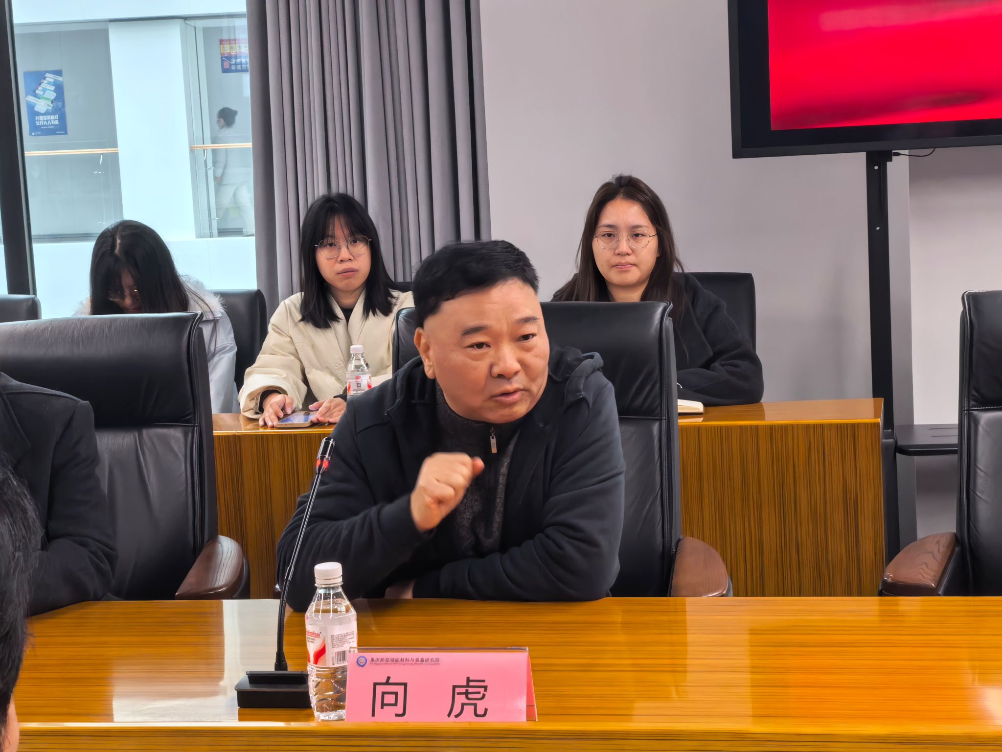 明月湖实验室副主任向虎对张燕一行的到来表示热烈欢迎,他详细介绍了国家实验室建设的整体背景,以及明月湖实验室的成立初衷、核心使命、人员构成与社会责任。重点讲解了实验室在新材料领域的核心研究方向与关键技术突破,让在场师生对实验室的科研实力与发展定位有了更清晰、直观的认知。此外,他还介绍了潘复生院士的学术成就及其在相关领域的社会影响力,为师生们带来深刻启发。