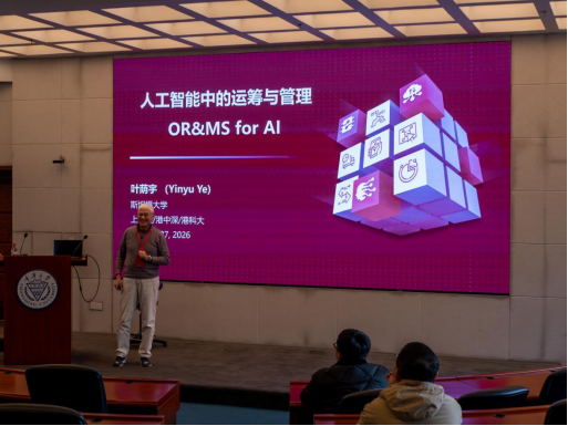 1月27日,国际运筹优化领域的顶尖学者——叶荫宇教授以"人工智能中的运筹与管理"为主题,为学院师生带来了一场精彩纷呈的学术讲座。